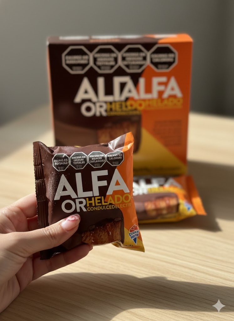 Alfajor helado x8u sabor DULCE DE LECHE con corazón de dulce de leche y base de galletita sabor vainilla
