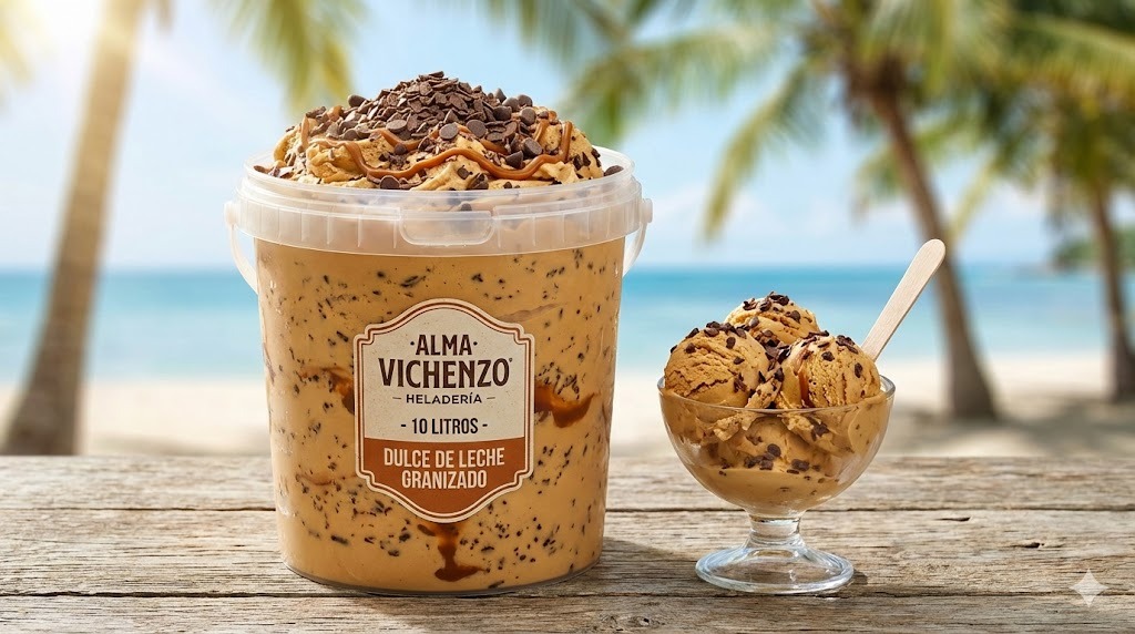 Balde de Helado Artesanal x10lts/5kg sabor DULCE DE LECHE GRANIZADO