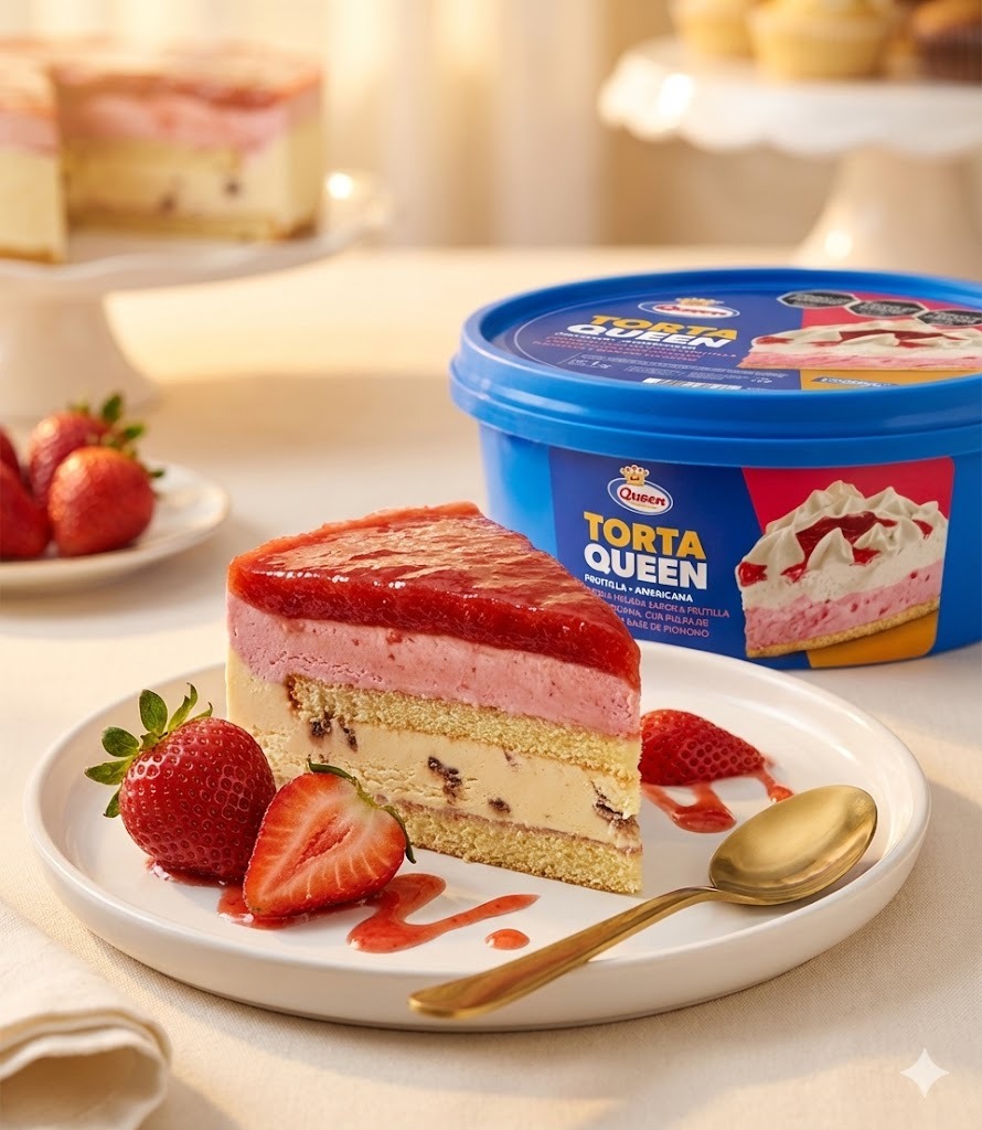 Torta queen x1unidad sabor Americana c/frutilla y base de pionono – Chocolate y dulce de leche con base de pionono